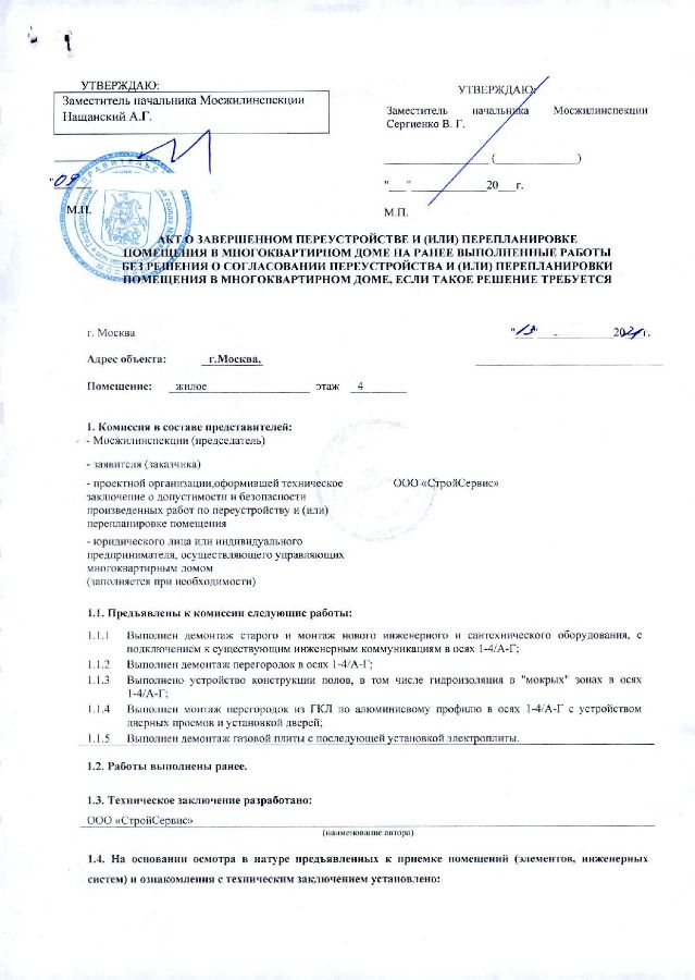 7. Получить акт о завершенном переустройстве и (или) перепланировке помещения.